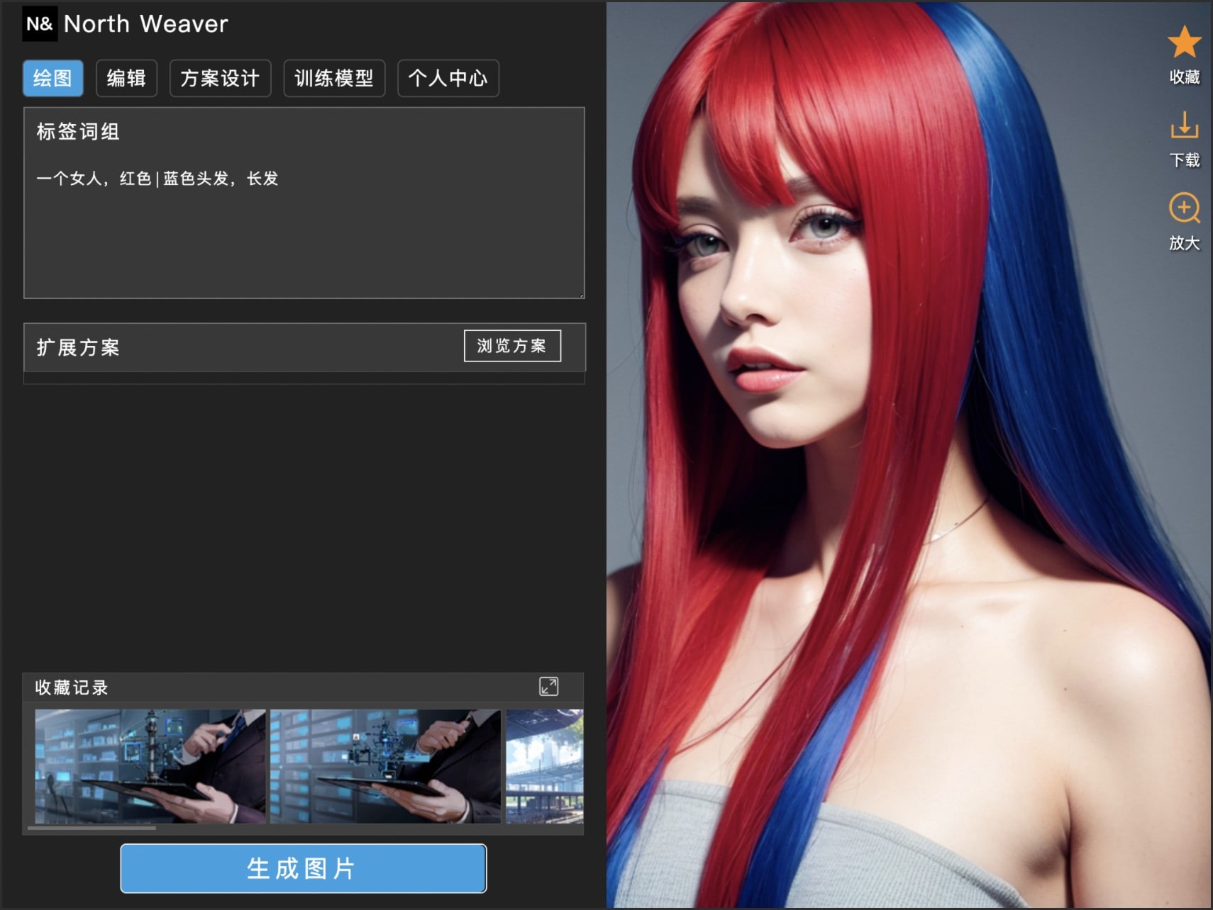我们将 NorthWeaver 定义为一个让图像生成创意可以自由生长的平台,这里不仅仅是作图,更可以让你的创意方案为他人所用。
