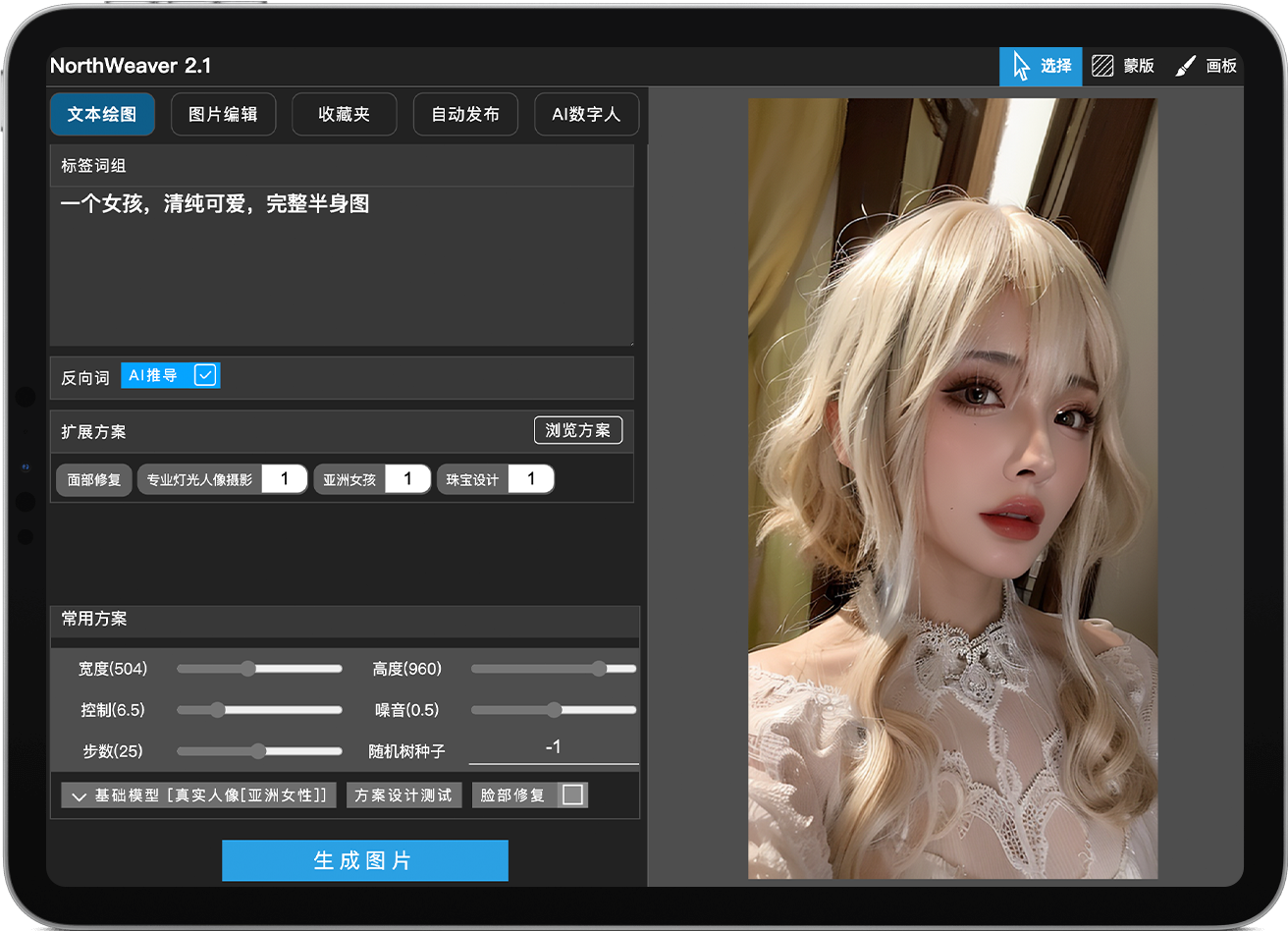 由成都一路向北科技有限公司基于 Stable Duffusion 开发的一款更适合国人使用的AI绘图工具